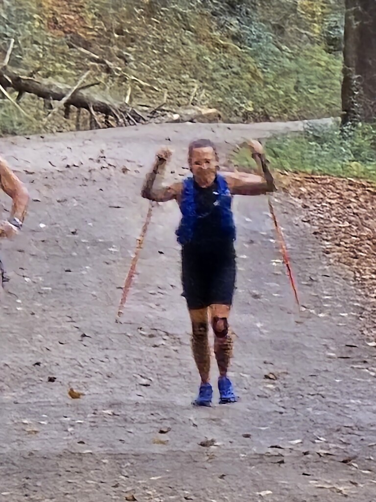 We were not done yet. We still had one more climb and the longest three miles to go. After the climb I accidentally stabbed my poor toe with my pole which sent a shooting pain through my foot. One I have never felt before. I think it popped a blister. It was radiating to the point where I could not take a step for a second. I shuffled it off but wow, was a toe going to take me out with just a few miles to go. It could not, but in that moment the pain was agonizing. I told my pacer it felt like aliens were in my shoe.