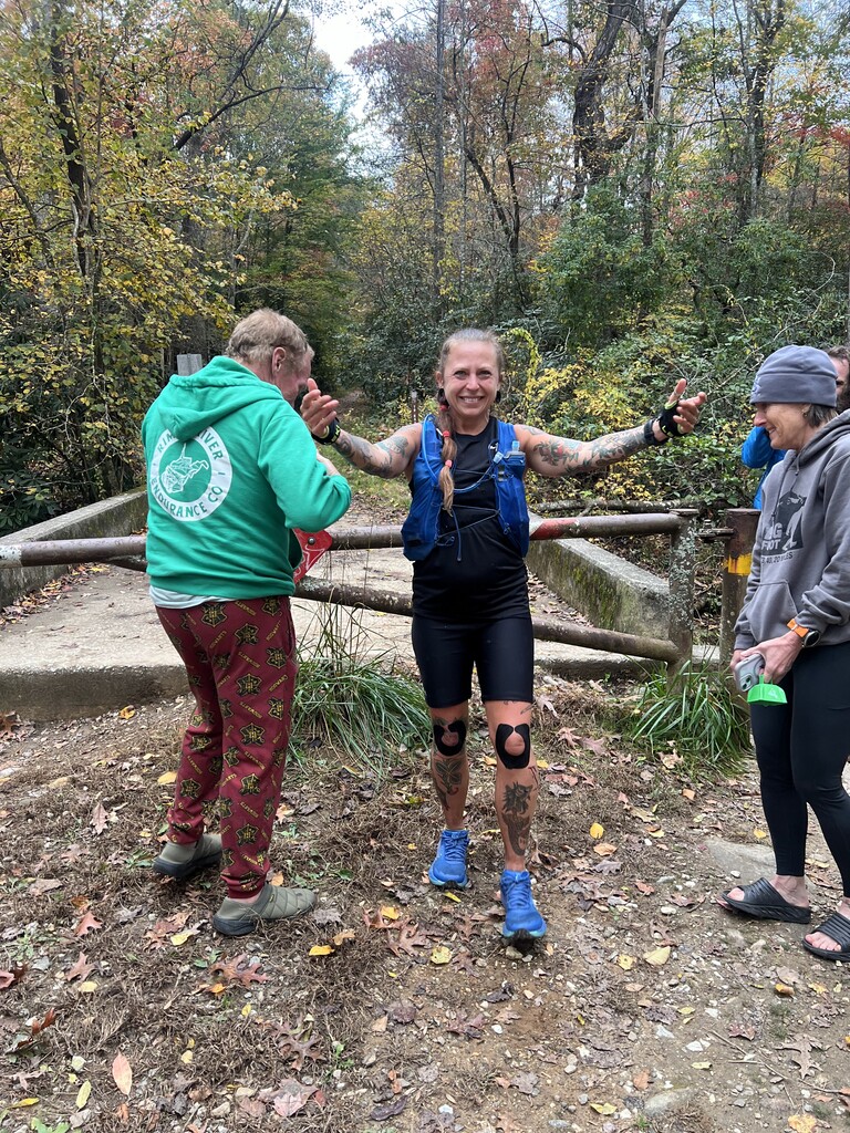 Finishing the Explorer loop and making a left onto Bent Creek Gap Road was the end. It was the final stretch. We came up around a small climb and a curve and I could hear my people. A friend who happened to be doing her own training run was in the distance. We exchanged hugs in passing. She congratulated me and said I had a group of friends waiting for me just ahead.