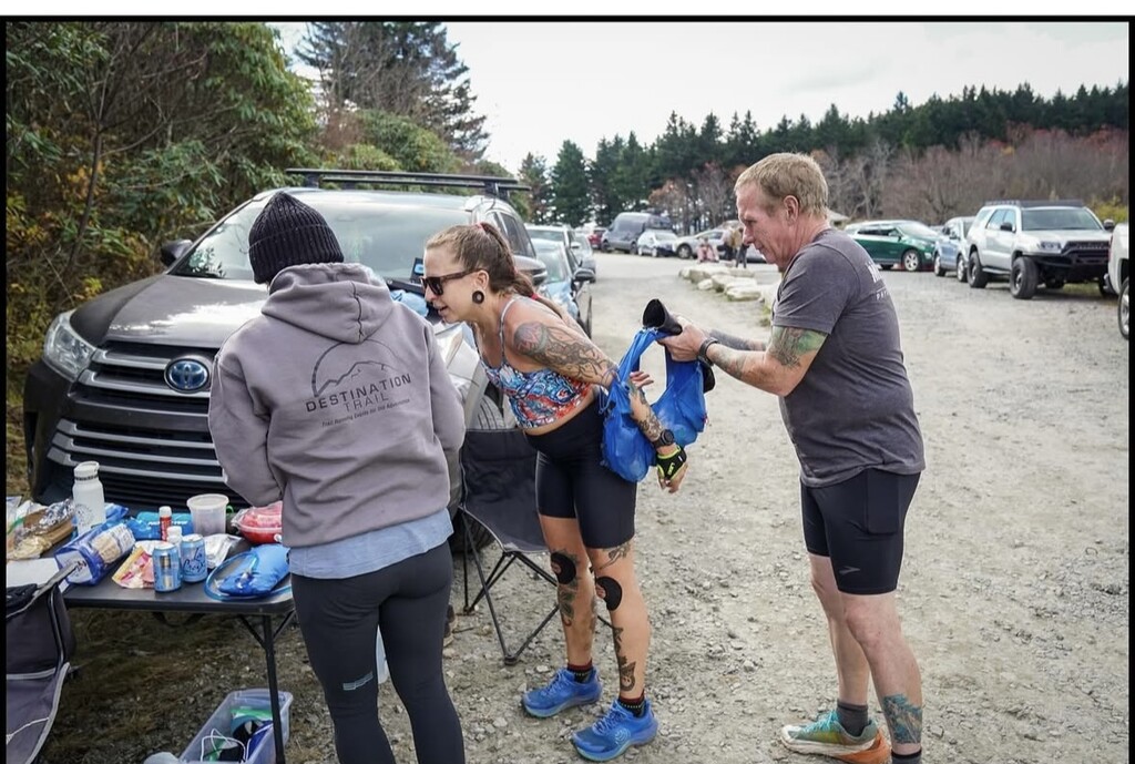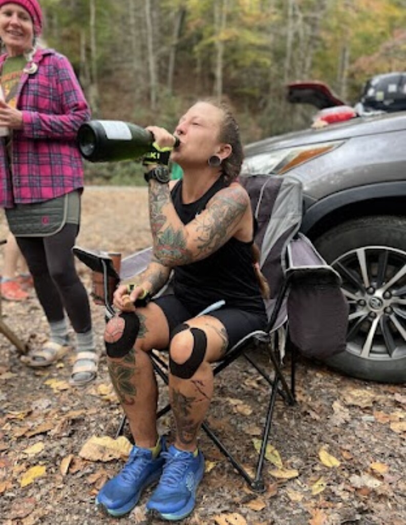 After the climb up Ferrin Knob it started to happen again. My eyes were getting jittery and crossed. They wanted to close again. I kept rubbing them to keep them open. We only had a couple more miles until our crew. The initial plan was to make this one quick. I could see the cars below as we made our descent into Bent Creek Gap Road. I asked my pacer in the most please way, could I just take five minutes to close my eyes. That is all I wanted. The climbs we were about to undertake in the midnight hour were serious. They are hard on a fresh day just doing one. We were at about mile 70 and about to tackle them with around 19k of climbing under us, at the 4 a.m. hour. My pacer said absolutely. I have never needed that so bad in my life. I sat in the chair, curled up in a blanket, and shut my eyes. My team charged my watch and Garmin. I got nine minutes in here, though I didn't sleep just shutting my eyes-it saved me.
