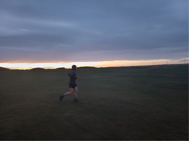We got to the Redcar coast as the sun was going down and followed the coastal path into the sand dunes before realising we needed to ‘about turn’ and get back on the paved Teesdale way section past Teesworks. Headtorches went on and we did not have time on our side at this point and picked up the paced considerably – or that’s how it felt, Graham snuck his mobile out his pack and began playing ‘eye of the tiger’ despite how shit I was feeling, we had a chuckle through the background noise of my heavy breaths