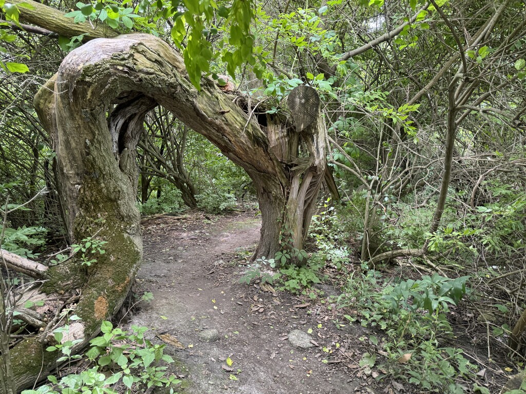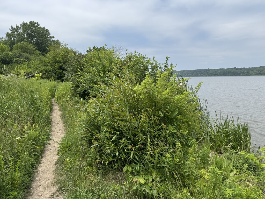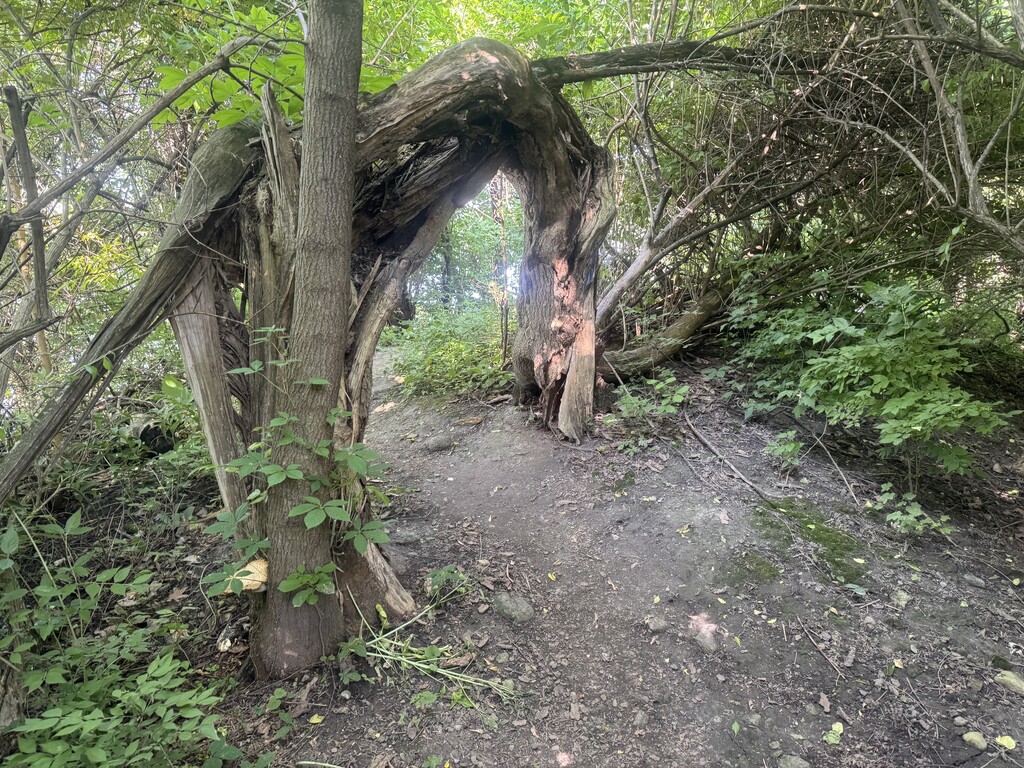 - I crossed over 107th St and headed up tiny downhill. Bushwacking was required because the Forest Preserve downed trees last year and left them blocking the trail, which was also overgrown with thorny vines. This put me further behind my previous effort.