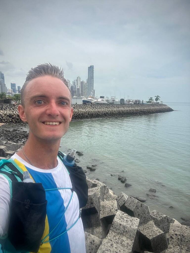 It was a tough but incredible challenge. I ran solo across Panama, from the Atlantic to the Pacific Ocean. The heat and humidity were intense, and honestly, I didn’t feel like eating much, just stayed focused on drinking water and Powerade to keep going.