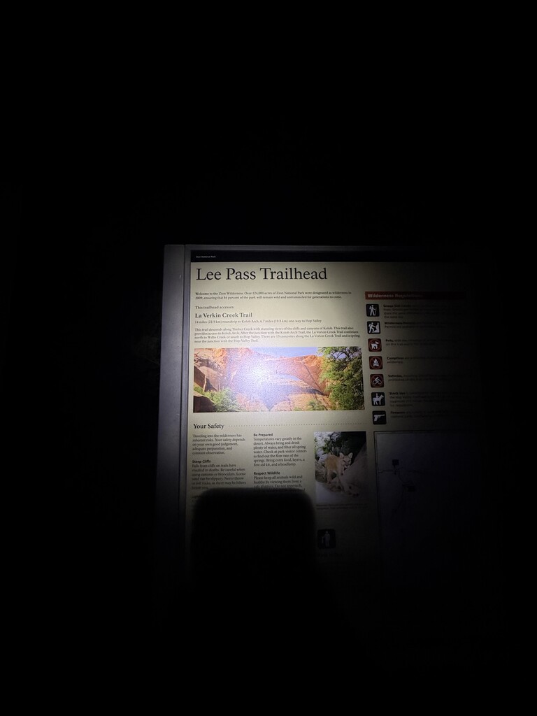 So I started the trail at around 4:11am on the morning of November 8th. I slept at the Lee Pass Trail Head the night before since a lot of people park their cars overnight and backpack the route.The 8th was a full moon and it was a cold clear sky with lots of stars before I headed out. The only thing I was worried about the night before were the mountain lions since there were signs everywhere at the trailheads with sightings and the fact I was going to be running alone in the pitch black until around 7am.