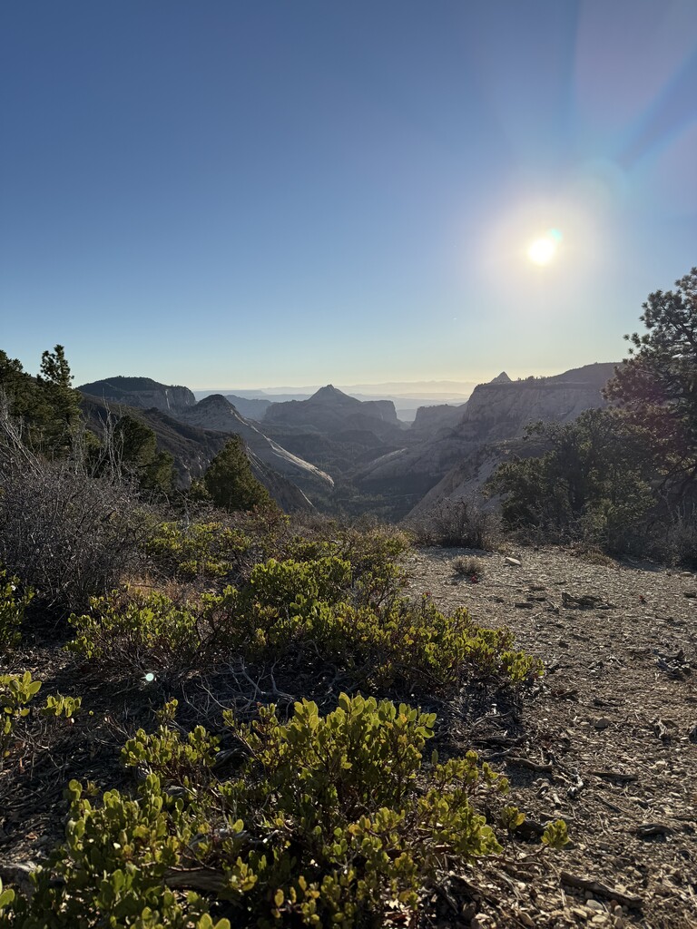 On the way back up it was right around Noon and it was incredibly hot with no shade on the east side for the way back up. The hike up was a slog and I was worried I didn’t fill up enough water. I carried 3L but since I was going slower and sweating more, I was drinking more. The spring that was right at the top/bottom of the big vert section was really funky and I didn’t trust it. It smelled like sulfur and I just didn’t want to risk it. I started to try and filter water from a slow trickle from a rock but a hiker passed by and gave me the remainder of her Nalgene which was a huge life saver. After the climb once it was on more run-able terrain again, my knees were starting to flare up pretty bad. It got to the point that I was limping and decided I needed to call it at the next trailhead. If I didn’t bail at the West Rim Trailhead, it was going to be another 7 miles to Hop Valley and then 13 to Lee Pass.