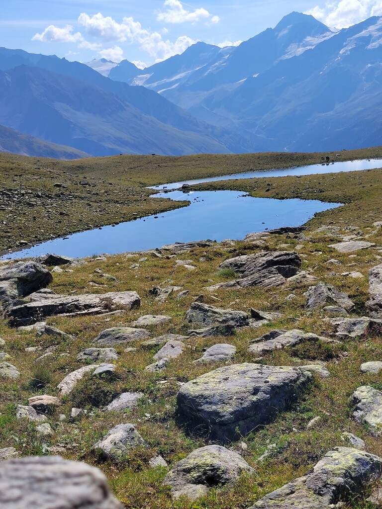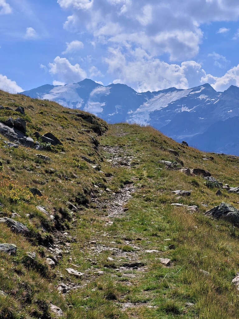 From Langtauferer Hof, the route first leads over the Wölfeleskopf to the first three-thousand-metre peak: the Großer Schafkopf (3,000 m). The ascent is manageable, the view of the Ferner opens up the high mountains impressively. The trail first leads downhill and then further up towards Radurschlscharte before the technically demanding and bouldery descent to Hinterer Bergle.