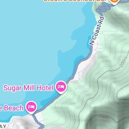 Start at the water on the public beach just to the north of the small dock and north of Quitos Inn. Head south along route 1 up to Stoutt's Lookout, then up ridge road, turn right and head up Sage Mountain Road to the national park. The trail goes up the concrete steps directly below the cell tower, past the tower and up into the jungle.