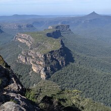 Summit The Castle using the chains and ropes provided, then run south across the top of the castle to the tall rock cairn and logbook at the clifftop. Sign it, then retrace back to Wog Wog - but bypass Corang Peak using the southern bypass route.