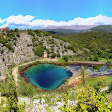 This route begins at sea level in the adriatic town of Starigrad which nestles below the Velebit mountains and tracks inland towards the Bosnian border. First climbing through the steep canyons of Paklenica national park the route crosses the main Velebit range before dropping into the harsher karstic interior. Following mostly paths and trails it skirts the towns of Gracac and Knin before making the ascent of Croatia's highest peak the impressive Dinara (1831m asl) after which the entire Dinaric alps range is named. The trail ends beside the source of the river Cetina at the foot of the mountain Dinara.