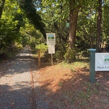 At the bottom of the hill, you will turn left and pass the sign for Short Line Trail, Spring Grove Section. This gravel path runs between the hospital grounds and the Cinnamon Tree Court neighborhood. You will pass the old power plant for the Hospital on your right as well as a number of other structures. You may also see some feral cats, deer, or fox, depending on the time of day as you run through those woods. Follow the trail to the small wooden bridge and take the ramp to the right down the railed section. The rails are well maintained with gravel so your footing is fine.