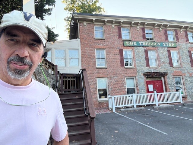The run starts at the bottom of the steps that let out in the parking lot of the Trolley Stop Restaurant. The Trolley Stop restaurant was named for the #9 trolley which made its final stop at this historic 1833 building. That building served as a tavern and inn on the Ellicott City to Catonsville line. The trolley stopped outside the restaurant's second-floor dining room from its service start until its last run on June 18, 1955.