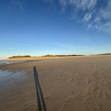 The starting point is the southernmost reachable point of the Hörnumer Odde. One can reach Hörnum by road, then continue on foot for about 15 minutes to the very tip of the Odde. The exact shape and length of this sand spit are constantly changing due to coastal erosion and deposition, meaning that maps often show outdated outlines. For this FKT, the start is defined as the southernmost accessible piece of land at the time of the attempt.