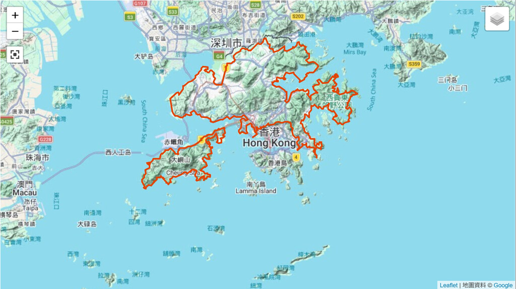The route runs along the outermost periphery of New Territories.