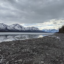 A 2021 Alaska Supreme Court ruling ensures public access to the lake and the BLM land around it. The road begins at the yellow gate outside the Princess hotel and continues to a grey metal gate near the lake. Beyond the grey gate, there is a short portion of trail to the lake. There are private properties adjacent to the easement between to gate and the lake. These properties have signs stating "no trespassing" but as long as you remain on the trail you will legally reach the rocky beach on Klutina Lake, which is the end of the route.