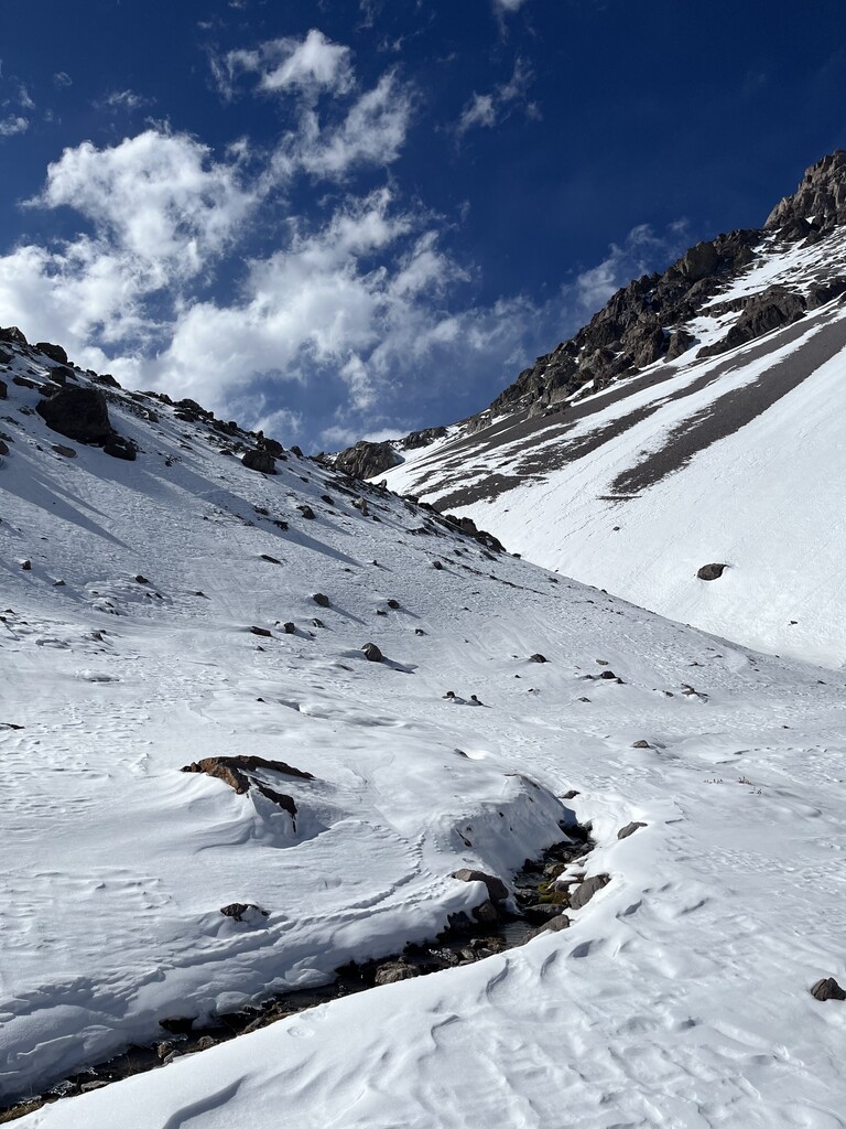 Whether you go via Yerba Loca or La Parva, you will find water to supply yourself, but only on the valley trail, not on the slopes or at the summit. On the west side of the hill, you will find water at the “Agua Larga” spring, and on the east side, you will find water in the Leonera ravine, which gives its name to the La Leonera estuary.