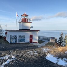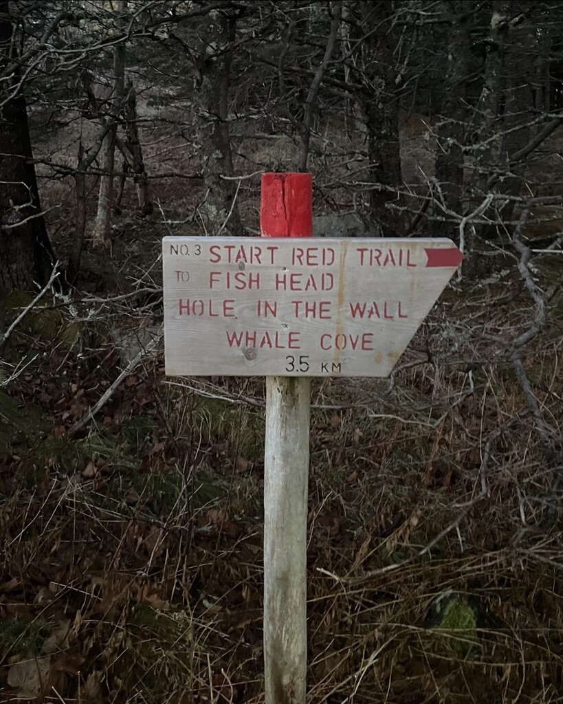 Also known as the Red Trail, "The Lighthouse Trail" on Grand Manan Island, New Brunswick, is a challenging, roughly 44-kilometer point A to B coastal route composed of linked hiking trails following red trail markers. The trail starts at the iconic Swallowtail Lighthouse and finishes at the Southwest Head Lighthouse. The route features rugged cliffs, forests, unique trees, and stunning Bay of Fundy views, passing landmarks like Hole-in-the-Wall and the Whistle Lighthouse, with sections ranging from forested paths to rocky, exposed shorelines. The sections that make up the Lighthouse Trail are the following: Swallowtail Lighthouse to Whale Cove, Whale Cove to The Whistle Lighthouse, Whistle Lighthouse to Dark Harbour and Dark Harbour to Southwest Head.