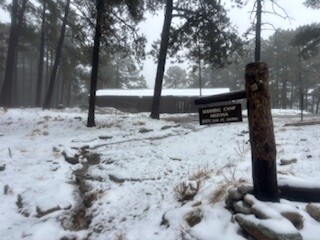 Manning Camp, in Saguaro National Park, is named after Levi Manning, who built the cabin there in 1905 as a summer home for his family. Manning later served as the mayor of Tucson from 1905-1907. In 1907, the area became part of the Coronado National Forest. The cabin was subsequently used for fire watch and trail crews and later for biological researchers and backcountry rangers. Manning Camp can be accessed by several routes; this FKT reaches it via the Arizona Trail traveling north-bound on Passage 9 (Rincon Mountains). From Loma Alta Trailhead, start at the gate, taking the Hope Camp Trail for approximately 2.4 miles until you reach the Quilter Trail (which is where you hop on the AZT). Go left on Quilter Trail, which takes you 4.6 miles through desert landscapes until you reach the Manning Camp Trail. Go left here to get on Manning Camp Trail (and to stay on the AZT). As you gain elevation, you will leave the lower desert for the forest, passing through the Grass Shack Campground on your way to Manning Camp. The last ~5ish miles from Grass Shack to Manning Camp is the steepest part of the climb, gaining over 2600ft. Despite the elevation gain on this route, it is not overly technical and most of it is runnable. When you reach Manning Camp, you can filter water if needed (there is almost always water available) and then run back down. The total route is around 29 miles. The gpx file for the route starts and ends a little before the gate in the parking area at Loma Alta Trailhead, but for the FKT segment, start and finish at the gate.