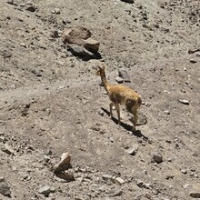 The route starts climbing the well-marked path up to 7 Hermanas (4890m) on easy trail. From there, one descends a bit and then climbs back up to the electrical tower on the nearby hill, where a rough jeep road leads down to the high pass on the road back to Copiapo. From there, the easy "trail" stops and it is mostly off trail for the remainder. The second peak, Cerro Santa Rosa (AKA Cerro Wubba Lubba Dub Dub) at 4910m, is a steep and loose scree field, without any real trail. Sometimes there is a light track to follow, but it's rough going. From the summit, the route traverse the long summit ridgeline, and then down another very steep scree field before crossing a dirt road and beginning the climb up to Cerro Pastillitos (5090m). This side of the mountain doesn't have a real trail, but rather a large rocky face that meets up with the normal trail near the summit. From there, the normal route's trail leads back down to the dirt road and back to the refuge.