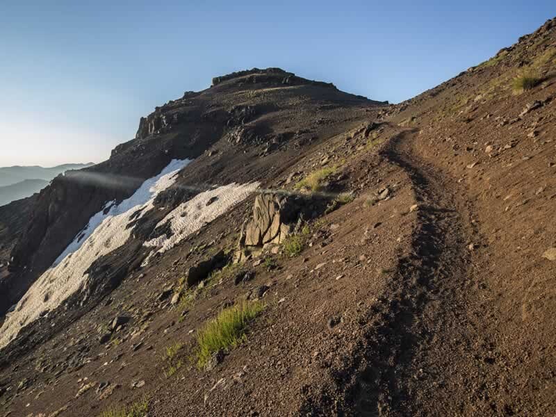 Pacific Crest Trail: California Section J is a 73-mile point-to-point section of the 2,650-mile Pacific Crest Trail (PCT) that extends from Sonora Pass to Echo Lake. This section of the trail is characterized by volcanic mountains and flower-filled meadows along a gentle terrain. Day hikers and section hikers will find this section easy to access due to numerous road crossings and trailheads. The trail is moderately rated, multi-use, and is open to runners, hikers, backpackers, and horseback riders.
