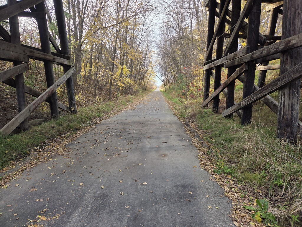 This Run Across Minnesota route traces the Soo Line Southern Route rail trail from the Wisconsin border, connecting up with the Wobegon and Central Lakes trails up to Fergus Falls. The final stretch follows farm roads west to Wahpeton, North Dakota. The majority of the route, aside from Fergus Falls to Wahpeton, follows trails with minimal vehicle traffic (only ATVs and snowmobiles).