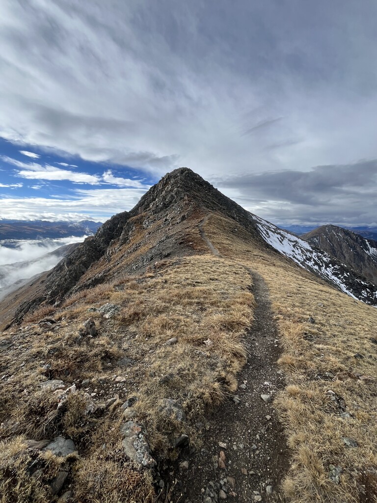 After climbing towards Byers Peak, the loop runs mostly above treeline on alpine tundra, tagging four prominent summits: Byers Peak (12,804 ft), Bills Peak (12,621 ft), Saint Louis Peak (12,507 ft), and Mount Nystrom (12,651 ft). The route follows official trails for most of its length: Byers Peak Trail, Saint Louis Divide Trail, and Mount Nystrom Trail, with a short section between Byers Peak and Bills Peak requiring off-trail travel. Please be aware that the trails along the wide, open ridge are very faint if perceivable at all.