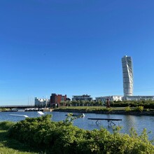 Through residential areas, on sidewalks and on a long beach promenade, you run past an old shipyard, world-famous architecture, and rolling sand dunes with bathing piers that invite you to take a refreshing dip. The path goes through historical land, in the area around Västra hamnen and Dockan, Kockums began its shipbuilding industry in Västra Hamnen at the beginning of the 20th century, which continued for almost 100 years. Here stood the famous Kockumskranen, a 146-meter-high crane that until 2002 was a landmark for Malmö, but which was then moved to a shipyard in South Korea. In recent decades, Västra hamnen has undergone major changes, the starting point being the housing fair Bo01, which was organized in 2001. In addition to the exhibition area, a brand new district with exciting architecture and two brand new bathing areas were built, which the whole of Malmö enjoys during the summer months. Along the way up to Riberborgsstranden, it is hard to miss Turning torso, the 190-meter-high residential building designed by the world-famous architect Santiago Calatrava.