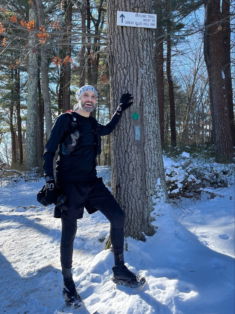 This is a route that includes both, and connects them. The route is an out-and-back that starts near the furthest north part of the Middlesex Fells Skyline Trail (Bear Hill Parking Lot), goes to the furthest east end of the Blue Hills Skyline Trail (Shea Rink Parking Lot), and then returns to the starting point. Both the Blue Hills North Skyline and South Skyline sections are included in the route, and may be completed while either doing the “out” or “back”. The route traverses one side of the Middlesex Fells Skyline Trail at the beginning, and closes the loop by doing the other side to finish. To connect the two distinct Skyline Trails there are roads and streets which are considered an “open course.”