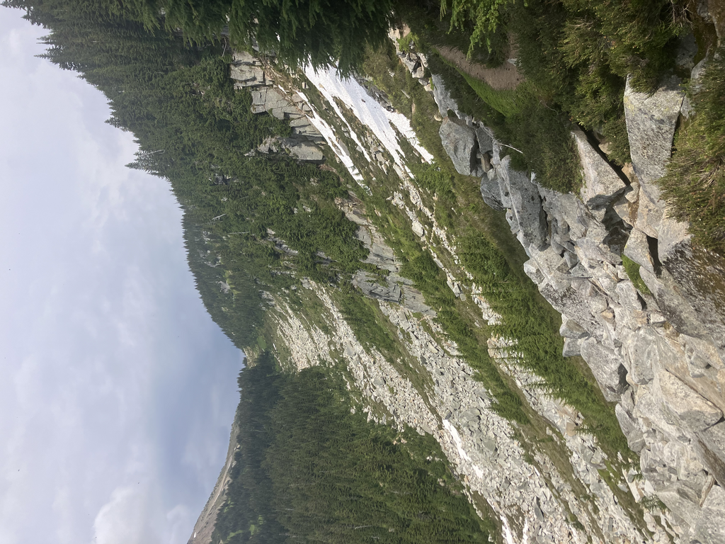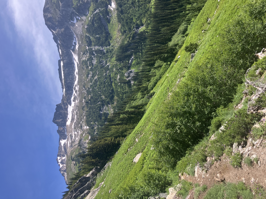 Route description (going counterclockwise). To start the route, (from Buck Creek Trailhead), hike back along the road, and then up to the Phelps Creek Trailhead on the 3 mile gravel road. The Phelps Creek Trail leads 5.3 miles through a pleasant forest with frequent fords, to the edge of Spider meadows. Beyond Spider Meadows is a steep and hot climb to Larch Knob. Spider Meadows, Cloudy Pass and Buck Creek Pass all have absolutely gorgeous wildflower displays, Cloudy Pass having some of the best wildflower meadows I’ve ever seen in my life. There’s also a stretch from Larch Knob (also incredible) to Lyman Lake that is primarily alpine and traverses a disappearing glacier. This “glacier” can pose some difficulty early in the season, and it’s rather annoying in the fact that it’s often too soft and moderate to glissade, but it’s still slippery and uneven enough that it’s hard to walk on upright. The upside to this is that about a mile of the hike is on a glacier! The northside has a few snowfields that can be tricky early in the season as well, but appeared to be easier to glissade down than Spider Glacier itself. This is usually a high route between Larch Knob and Upper Lyman Lake, so try to stick to the GPX track as much as possible, but a little bit of variation is fine between those two points. The area north of Spider Glacier is a recently glaciated basin holding the remains of the Lyman Glacier (which only 100 years ago descended all the way to Lower Lyman Lake) and the icy-cold Upper Lyman Lake. It also holds a multitude of mosquitoes which will follow you for miles and descend upon you as soon as you stop. To minimize your time not moving through this area, I recommend filling up on water from a nice little series of springs just before the edge of the glacial moraine. You don’t need to filter, and so you can move on faster before the mosquitoes have noticed you. This basin is well worth the mosquitoes, and in fall the larches here are a spectacular sight. Beyond Cloudy Pass is a highly scenic traverse high up on a boulder field. This can hold snow well into July, and can be treacherous when icy. If you are attempting this route early in the year, it is permissible to take the low route below this traverse, although I can’t imagine why you would want to, since this adds mileage and perhaps an additional 500 feet of elevation gain and loss. There’s another nice spring here on the traverse. The section of the PCT that the route uses is nicely well-graded, but somewhat boring compared to the rest of the route. This makes good running. The ascent to Middle Ridge can also have bad mosquitoes, but as you reach the ridgetop there is a pleasant meadow full of little streams, flowers and marmots. There’s excellent views of the surrounding peaks, including Fortress and Plummer. Past the ridge, you’re back into forest for another few miles, until a series of switchbacks takes you steeply up into the alpine near Buck Creek Pass. There’s a beautiful traverse beneath Helmet Butte after that, with views out over the valley and even to peaks beyond. The Buck Creek Trail passes through a burn zone for several miles, and during this passage there is one of the most dangerous points on this route, the crossing of the Chiwawa River. When I did this route, in early July, the river was a rushing torrent, with over three feet of whitewater. The strategy that worked best was walking on the rough rocks and avoiding the deeper looking areas. After that, you’re in the clear and it’s just three miles of easy walking (with a lot of brushy thimbleberry) to the trailhead.