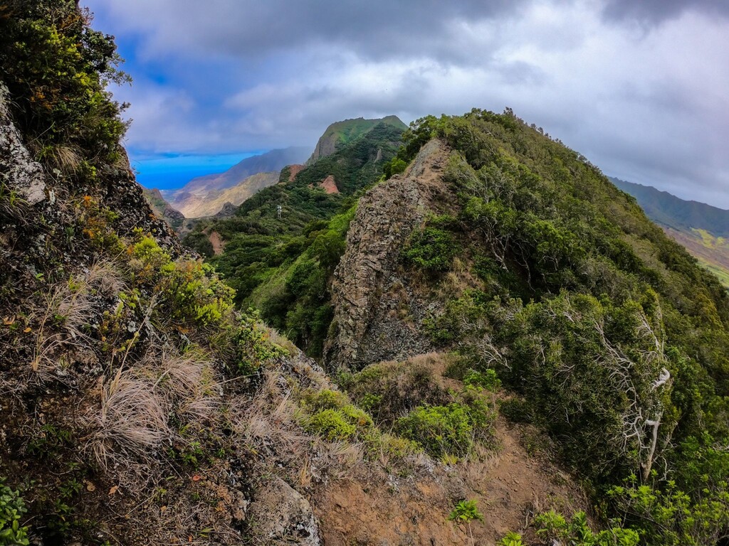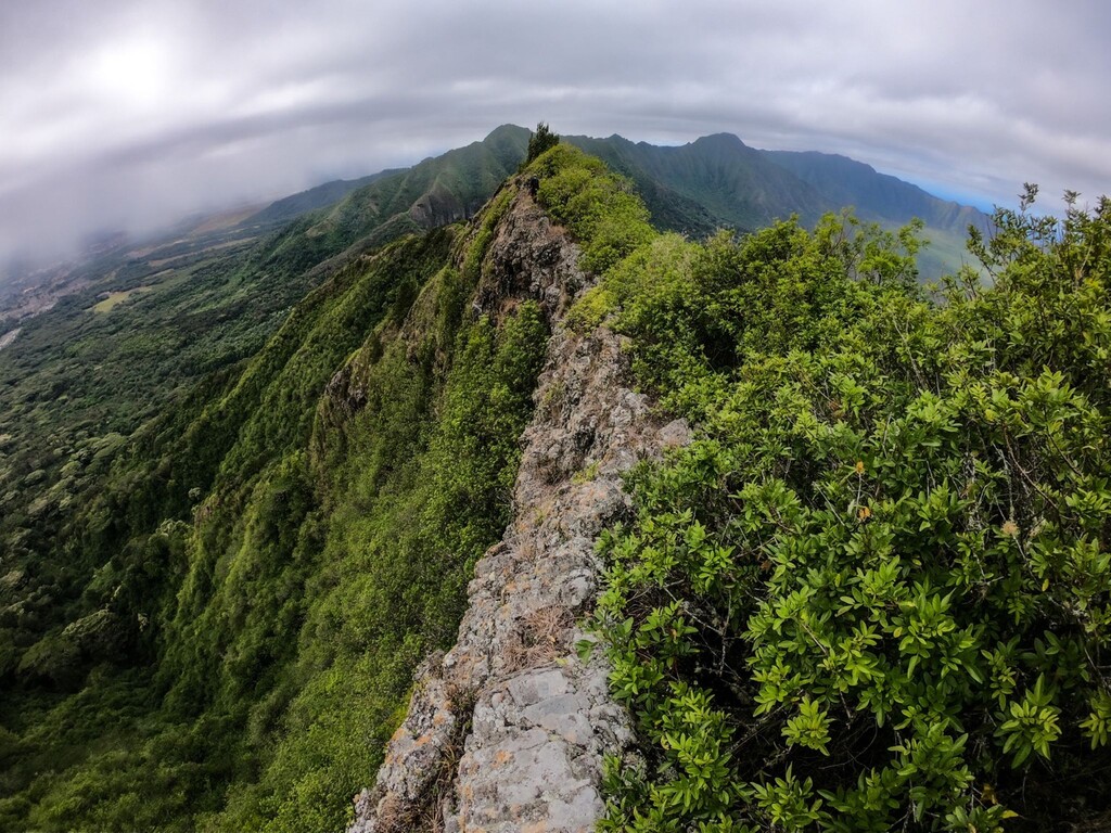 The Wai'anae Summit Trail (WST) follows the spine of the Wai'anae Range along the western side of O'ahu, creating one of the island's longest and demanding ridge traverses. The route runs roughly the length of the range, linking multiple summits and narrow ridgelines while staying almost entirely on the spine of the mountains. The route contains a combination of exposure and terrain variety across the entire traverse. Including long knife-edge ridges, steep choss climbs, and sections where ropes assist hikers over particularly steep or eroded terrain.