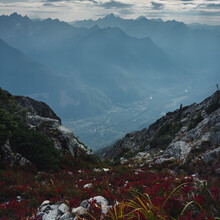 The descent simply reverses the route back down the summit block, through the boulder field, along the ridge, and then the final plunge to the trailhead. Conditions are often dry on the ridge, but snow, boggy ground, and route ambiguity in the basin or gully can slow progress, so diligent navigation, early start, and good fitness are essential. There are no obvious water sources on the trail, so bring enough for the round trip.